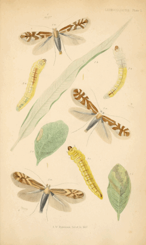 - Stainton, H. T. (1857): The natural history of the Tineina 2: I-IX, 1-317, pl. I-VIII. — Digitalisat auf archive.org: [56-65], [pl. I].
