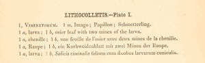 Die laut Titelblatt der Publikation „unter Mitwirkung Herrn Professor Zeller und J. W. Douglas“ verfasste, viersprachige Beschreibung von Stainton (1857: 56-65) schließt auch die Präimaginalstadien ein [Digitalisat auf archive.org].