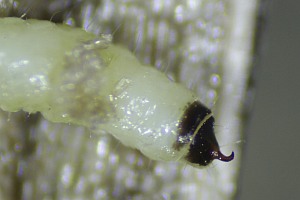 Die Raupen leben in den Stängeln von Natternkopf (Echium vulgare). Schütze (1931) formulierte: "Zu der mir unbekannten, in der Stettiner Entomologischen Zeitung 1888 Seite 82 veröffentlichen Biologie bemerkt Major Hering: Ich füge hinzu, dass sich das Vorhandensein der Raupe beziehungsweise Puppe in dem bewohnten Stängel nicht verrät, man muss daher auf gut Glück auf den Flugstellen die Stängel abbrechen und sich durch Aufschneiden von der Anwesenheit der Tiere überzeugen." Damit unterscheidet sie sich von der Raupe von Tinagma balteolella, die im Blütenstand von Echium vulgare lebt.