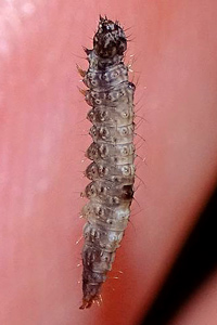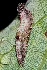 Mit Sicherheit wichtigste Raupennahrungspflanze ist die Zitter-Pappel oder Espe. An dieser Pflanze meldet schon Brown (1895: ccv) - der Entdecker und Beschreiber der Raupe - einen Raupenfund in Frankreich. Chrétien (1905: 67) bestätigt diese Pflanze und ergänzt: "A Digne, la Chenille d'asperipunctella se nourrit de Populus nigra et des Salix incana et rubra. Quand elle est jeune, elle se tient allongée Sous les feulles, dont elle mange le Parenchyme, respectant les petites nervures et la marge supérieure. Plus grosse, elle attaque la feuille par les bords." Kyrki (1988) schreibt zu dieser Art: "The larva feeds on Populus tremula L. and P. nigra L., and also on several Salix species, e.g. S. elaeagnos Scop. (Brown, 1895 ; Chrétien, 1905). In northern Europe the main food plant is Populus tremula. The larva lives freely on the leaves, skeletonizing them when small and later feeding from the edges (Chrétien, 1905). It pupates in an open network cocoon, which is open at both ends so that the larval skin can be thrown away through the posterior opening."