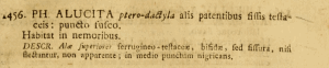• Erstbeschreibung: Linnaeus, C. (1761): FAUNA SVECICA Sistens Animalia SVECIÆ Regni: MAMMALIA, AVES, AMPHIBIA, PISCES, INSECTA, VERMES. Distributa Per CLASSES & ORDINES, GENERA & SPECIES, Cum Differentiis Specierum, Synonymis Auctorum, Nominibus Incolarum, Locis Natalium, Descriptionibus Insectorum. Editio Altera, Auctior: Frontispiz, [i-xlviii], 1-578, pl. I-II. STOCKHOLMIÆ (LAURENTII SALVII).