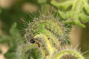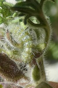 Die Art scheint auf den Trauben-Gamander (Teucrium botrys) spezialisiert zu sein, dessen Blüten und junge Früchte von der Raupe gefressen werden. Teilweise abgebissene Blüten- und Fruchtstiele mit dadurch anwelkenden Blüten- und Fruchtständen sollten die Anwesenheit der Raupe verraten.