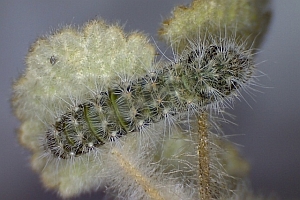 In der Erstbeschreibung wird eine Beziehung zu Artemisia absinthium (Echter Wermut, Echt-Wermut, Wermutkraut) vermutet - dies war falsch. Die Raupe wurde vielfach an Marrubium vulgare gefunden - Ballota nigra scheint nur ausnahmsweise genutzt zu werden.