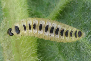Während die erste Raupengeneration im Frühling in der Sprossachse der Nahrungspflanze lebt, sind die Raupen der zweiten Generation im Sommer in den Blüten- und Samenständen zu finden. In beiden Fällen ist die Anwesenheit der Raupen nicht oder kaum von außen erkennbar.