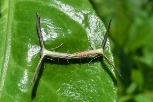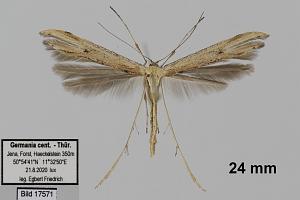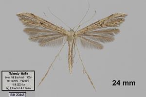 Von der viel selteneren Emmelina argoteles nur durch Genitaluntersuchung zu unterscheiden. Text: Rudolf Bryner