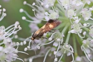 Schon Kaltenbach (1856: 261) hatte unter "Angelica" gemeldet: "Oecophora fulviguttella F.R. erhielt ich aus den, pag. 221 (nach 5) erwähnten, samenfressenden Räupchen." S. 221 hatte er unter "Angelica sylvestris" geschrieben: "Im Monat Oktober und November findet man an geschützten Stellen die reifenden Früchte von einem gräulichen Räupchen ausgefressen, welches deren meist 2 — 5 zusammenspinnt und innerhalb dieses Knäuels Schutz findet. Zur Verwandlung geht es in die Erde. Noch erwarte ich ungeduldig deren Entwickelung und werde den Namen der Motte nachträglich mittheilen."