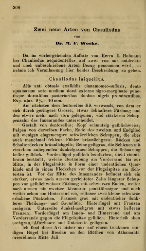 - Erstbeschreibung: Wocke, M. F. (1867): Zwei neue Arten von Chauliodus. — Entomologische Zeitung 28 (4-6): 208-209. Stettin.