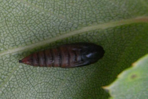 Hancock et al. (2015: 34) listen: "Ovum. Laid in June - July, but probably not hatching until Spring, on various shrubs, trees and herbaceous plants, including honeysuckle (Lonicera periclymenum), bog-myrtle (Myrica gale, field-maple (Acer campestre), sea-buckthorn (Hippophae rhamnoides), species of birch (Betula), Vaccinium, alder (Alnus), willow (Salix), eln (Ulmus), currant (Ribes), bramble (Rubus), pine (Pinus, juniper (Juniperus), willowherb (Epilobium), speedwell (Veronica), nettle (Urtica), gipsywort (Lycopus europaeus) and woodsage (Teucrium scorodonia." Leider wurde auch in dieser Auflistung nicht zwischen Freiland-Beobachtungen in Großbritannien und nicht verifizierten Literaturmeldungen von irgendwoher unterschieden.