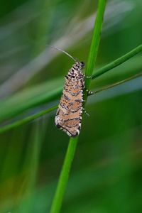 Schütze (1931: 164) hatte ganz entsprechend formuliert: "Biologie wenig bekannt, Raupe nach Gistel an Alnus, Rubus fruticosus, Prunus spinosa. Eppelsheim fing den Falter um Teucrium, brachte aber die zwischen Blüten und Samen lebende Wicklerraupe nicht zur Verwandlung. Süddeutschland." Gut abgesichert scheint mir nichts von alledem.