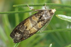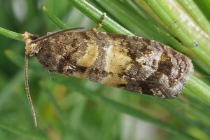 Auch Razowski (2001: 64) nennt für Mitteleuropa nur Abies alba und Picea abies (als "Picea excelsa") als Raupennahrung. Auf [tortricidae.com] werden aus Asien weitere Arten der Gattungen Abies und Picea genannt, dazu aber auch Pinus sylvestris, Tsuga sieboldii und Larix sp. Wie sicher diese Angaben sind, vermag ich ohne Studium der Primärquellen nicht zu sagen. Pinus sylvestris scheint zumindest in Europa keinerlei Bedeutung für diese Raupe zu haben.
