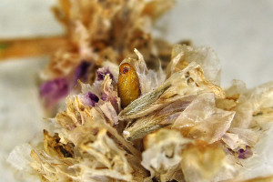 Bei Hancock et al. (2015: 25) ist schließlich zu lesen: "Ovum. Laid in July and October on thrift (Armeria maritima) and occasionally on other plants. Larva. [...] April - May, with a second generation in August; first generation either live in the flowerheads eating the unripe seeds, or in a tube of spun silk in young shoots eating the leaves; second generation are in dead flowerheads eating the seeds; infested flowerheads may be slightly distorted. Larva have been found on common bird's foot trefoil (Lotus corniculatus) in Pembrokeshire by J.R. Langmaid (Agassiz, 1983)." Und zum Lebensraum heißt es: "Frequents sea cliffs, estuaries and saltings where thift [sic!] is found, but also occurs inland in gardens where the plant has been established." Letzteres wurde durch Tina Schulz auch für Niedersachsen (siehe Bilder oben) bestätigt.
