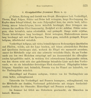 - Erstbeschreibung: Rogenhofer, A. & J. Mann (1873): Neue Lepidopteren gesammelt von Herrn J. Haberhauer. — Verhandlungen der zoologisch-botanischen Gesellschaft Wien 23: 569-574.