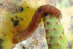 Bei Kennel (1921: 601) war dann zu lesen: "Die Raupe ist bräunlich, Kopf und Nackenschild sind braun, letzterer blasser, hinten dunkel gerandet, die Analklappe ist ohne Auszeichnung; sie lebt im September, Oktober in den männlichen Blütenkätzchen von Betula und Alnus".