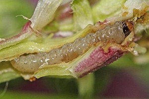 Nach der Zusammenstellung von Hancock et al. (2015: 125) werden eine Vielzahl von Malvengewächsen belegt: "Ovum. Laid in July - September on tree-mallow (Lavatera arborea). Abroad it is associated with various Malvaceae, including species of Lavatera, Althaea, Malva, Abutilon, Hibiscus, Gossypium and also hawthorn (Crataegus spp.)." Zur Raupe haben sie Interessantes mitzuteilen: "August - October; feeds on the seeds in the seed capsule or occasionally in the shoots of tree-mallow; moves from one capsule to another, to holes in a capsule usually indicating that the larva has left (Huggins & Mere, 1958); in Portugal it has been found feeding in the rootstock of Lavatera and Malva in September and was thought to do so when seeds are not available (Corley, 1992)."