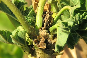 Kennel (1916: 469) schrieb knapp: "Die Raupe lebt im Juli und im September, Oktober in den Samen von Althaea rosea und Malva sylvestris".