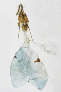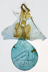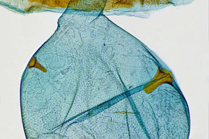 Die Hinterflügel der ♂ ♂ von Epiblema scutulana sind mehrheitlich weiß, während jene der ♂ ♂ von Epiblema cirsiana komplett dunkel sind.
