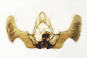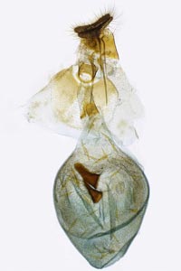 Zur Verpuppung steigt die Raupe einige Zentimeter in einen dickeren, letztjährigen Pflanzenstengel hoch. Ist der gewählte Stengel bereits abgebrochen, so wird die Bruchstelle mit Genagsel versponnen und bildet einen "Schachtdeckel", welchen dann die schlupfbereite Puppe von unten aufstossen wird. Ist dagegen der gewählte Stengel noch nicht abgebrochen, so nagt die Raupe eine "Sollbruchstelle". Im Stengelinnern wird ebenfalls ein Deckel aus Genagsel versponnen. Beim nächsten Wind wird der Stengel an der vorbereiteten Stelle brechen und so die Schlupfstelle freigeben. Im Exuvienbild unter "Puppe" erkennt man einen Stengel vom ersten beschriebenen Typ. Der Deckel konnte nicht ganz aufgestossen werden, so dass die Exuvie den Verschluss seitlich durchstossen hat. (Rudolf Bryner)