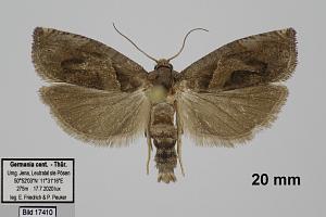 Kennel (1921: 584) schrieb: "Die Raupe ist einfarbig weßlich, der Kopf hellbraun, Nacken- und Analschild sind blaßgelblich. Sie lebt von September bis April in der Wurzel und im unteren Stengelteil von Artemisia vulgaris, besonders in alten Stöcken."