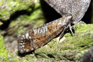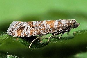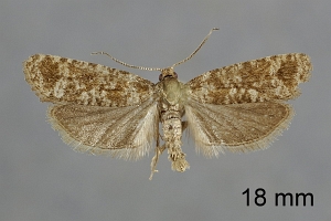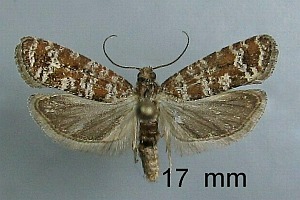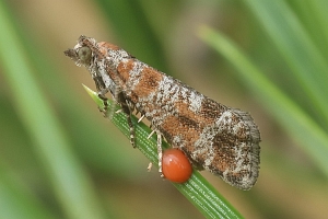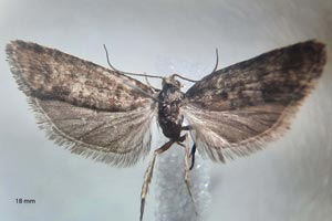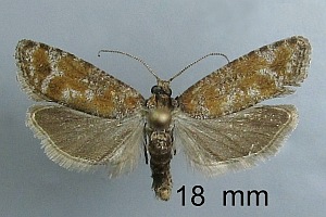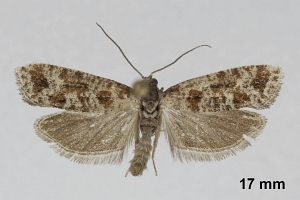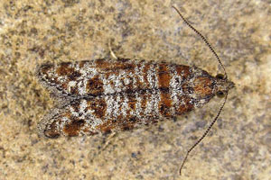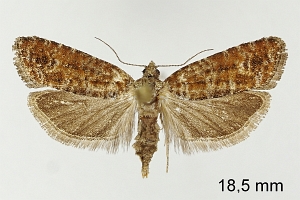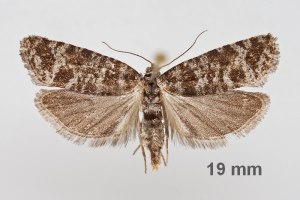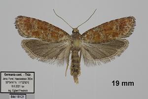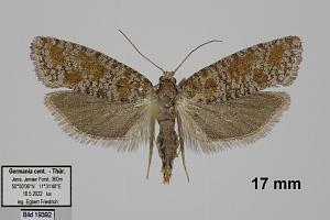 17-18: Vorderflügellänge 8 mm: Dänemark, Jütland, Varde Kommune, Oksby Sogn, Blåvand (Kiefernwald, Dünengebiete, Heideflächen), 12 m, 11. Juni 2022, am Licht (det. & fot.: Tina Schulz), conf. Friedmar GrafForum