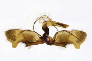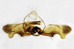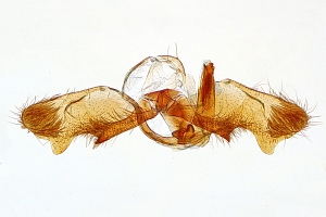 1-2: Genitalpräparat des als Diagnosebild 4 abgebildeten ♂, Deutschland, Baden-Württemberg, 78176 Blumberg, Ortsrandlage, Südhang, in Waldnähe (Buchen Mischwald mit anschließendem Trespen-Halbtrockenrasen auf Kalk), 720 m, 8. Juni 2012, am Licht (gen. präp., det. & fot.: Hans-Peter Deuring)Forum