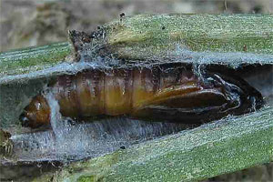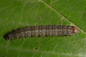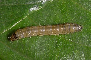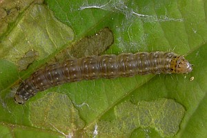Uffeln (1930: 64) von Hamm (Westfalen): "Bei Hm. oft in großer Menge im Mai-Juni und wieder im Juli/ August. Rp. hier meist auf Gebüsch von Rhamnus frangula und Prunus padus. Der Fltr. ist sehr scheu und beweglich, sitzt aber meist nahe der Erde auf Blattwerk oder an Halmen angeschmiegt. Einmal fand ich die Rp. in größerer Zahl unter Rindenschuppen eines alten Ahornstammes (Acer pseudoplatanus) bei Hm. eingesponnen, die, ins warme Zimmer gebracht, bereits nach etwa 4 Wochen im Febr. die Fltr. ergaben." Der Ahornstamm war Winterversteck für die überwinternden Raupen, aber keineswegs zwangsläufig auch Nahrungspflanze. Ob Prunus padus hier sicher bestimmt wurde, ist für mich keineswegs klar - auch hier ist Verwechslung mit den Blättern von Frangula alnus wahrscheinlich.