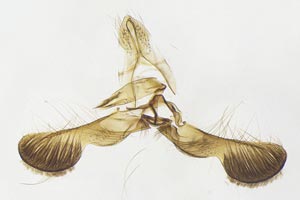 Kennel (1921: 676) hatte zusammengefasst: "Die Raupe ist weißlich, der Kopf hellbraun, Nackenschild dunkelbraun, die Analklappe wenig bemerkbar; vor der Verpuppung wird die Raupe scharlachrot; sie lebt Ende Juli bis Anfang September in den Hülsen von Astragalus glyciphyllos. Der Falter fliegt im Juni."