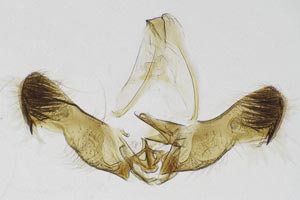 Bei Kennel (1921: 673) hieß es dann - wahrscheinlich auf Kennels unvollendeter Zucht beruhend - : "Die Raupe ist in der Jugend gelblich mit kleinen rötlichen Punkten, Kopf, Nacken- und Analschild sind dunkelbraun, vor letzterem stehen zwei dunkle Punkte; erwachsen ist sie weißlich, der Kopf hellbraun, die Punkte auf dem Rücken sind in große fast viereckige dunkelbraune Flecken zusammengeflossen, zur Seite des Rückens sind ebenso gefärbte kleinere Flecken, und dergleichen über den Bauchfüßen, das Nackenschildchen ist dunkelbraun, in der Mitte heller; sie lebt von Juli bis Ende September in den Samenhülsen von Vicia cracca; der Falter fliegt im Juni."