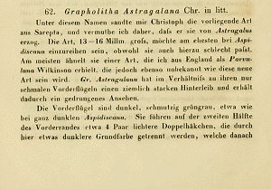 - Grapholitha astragalana Staudinger, 1871 [Originalkombination]