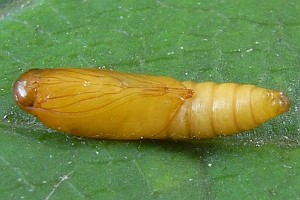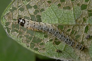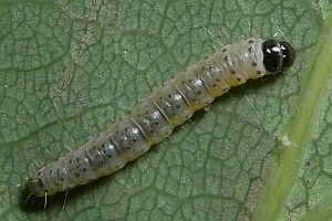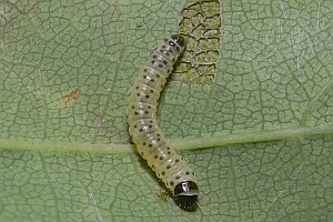 Kennel (1921: 705) hatte - ohne Hinweis auf irgendwelche Gallen - mitgeteilt: "Die Raupe ist reinweiß mit schwarzen Punkten, Kopf, Nacken- und Analschild sind schwarz; sie lebt im Juni zwischen zwei aufeinandergeklebten Blättern von Quercus, geht zur Überwinterung und Verpuppung unter die Rinde oder in morsches Holz. Der Falter fliegt im April, Mai."