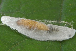 Hancock et al. (2015: 208) erwähnt die Eichen-Gallen gar nicht mehr, sondern sieht die Raupe zwischen versponnenen Blättern von Eichen: "June - August; lives in a frass-covered silken gallery between two leaves spun flatly together; feeds on the inner surfaces of the leaves, causing window-like patches but not eating the outer epidermis; when fully fed spins a cocoon under bark, in rotten wood or in an old spongy oak-apple gall, including those which have fallen; may pupate in autumn or overwinter as a larva." Dies passt gut zu den Beobachtungen von Heidrun Melzer aus Sachsen.