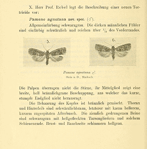 - Beschreibung als Pamene engadinensis: Müller-Rutz, J. (1920): Aus der Welt der Kleinschmetterlinge mit Beschreibungen neuer Arten und Formen. — Mitteilungen der Entomologia Zürich und Umgebung 5: 334-349 + Taf. II.