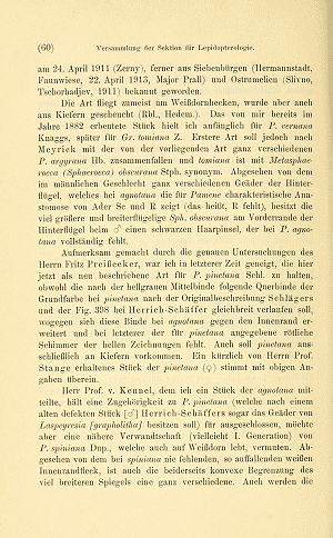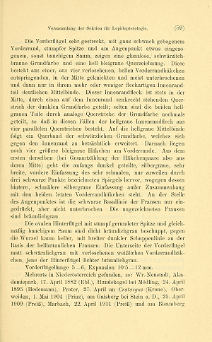 - Erstbeschreibung: Rebel, H. [Vors.] (1914): Bericht der Sektion für Lepidopterologie. Versammlung am 7. November 1913. — Verhandlungen der kaiserlich-königlichen zoologisch-botanischen Gesellschaft in Wien 64: 51-61.