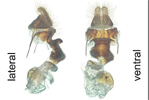 2: nicht eingebettet, laterale und ventrale Ansicht: Österreich, Wien, Pötzleinsdorf, 10. Mai 2021 (leg., Genitalpräparation, det. & Mikrofoto: Peter Buchner)
