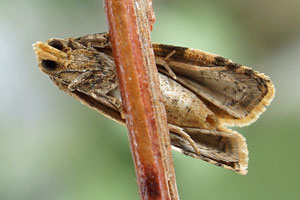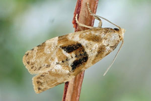 Gynnidomorpha alismana ist in den Monaten Juni und Juli hin und wieder um Gewässer herum am Licht zu finden. Die Raupe lebt bis April in den Knospen und Stängeln des Gemeinen Froschlöffels (Alisma plantago-aquatica). [Friedmar Graf]