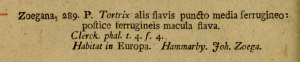 - Phalaena (Tortrix) zoegana Linnaeus, 1767 [Originalkombination]