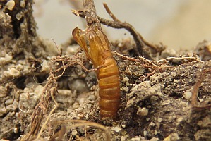 Kennel (1913: 323) meldete dann: "Die Raupe lebt wohl sicher in den Wurzeln von Scabiosa columbaria, Centaurea panniculata [sic!], jacea, nigra, auch Serratula salicina in engem, weißem Gespinnst vom Oktober bis Mai."