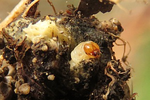 Schütze (1931) fasst zusammen: "Unter der Wurzelrinde von Centaurea paniculata [Centaurea stoebe], Centaurea jacea, Centaurea nigra in engem weißem Gespinst (Disqué). In dem von Apion penetrans bewohnten Wurzelstock von Centaurea paniculata [Centaurea stoebe], frisst fingerlange Gänge in die rübenförmigen Wurzeln und verpuppt sich darin (Kaltenbach)."