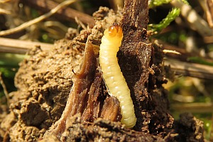Kennel (1913: 343) weiß nichts Neues: "Die Raupe ist sehr gestreckt, gelblichweiß, der Kopf gelbbraun. Sie lebt vom September bis Ende April in Wurzel und Stengel von Senecio paludosus und jacobaea".