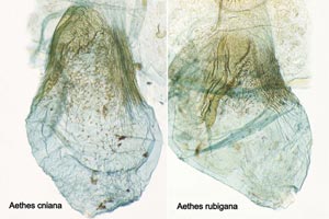 Achtung: "Die Zwillingsart, Aethes cnicana, ist äußerlich kaum von A. rubigana zu trennen. In der Schweiz wird aber das Vorkommen von A. rubigana sehr bezweifelt, da sich bis dato alle genitaluntersuchten Tiere aus unserem Land als A. cnicana erwiesen haben sollen." (Kommentar von Rudolf Bryner, CH)
