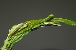 Müller-Rutz (1922: 223) schrieb: "Ein sehr kleines ♀, das wohl hierher gehört, erzog Dr. Thomann aus einer auf Rhamnus frangula gefundenen Raupe 26.10.20." Es ist hier also nicht auszuschließen, dass dieses Tier doch fehlbestimmt ist, noch weniger, dass die Raupe nicht an ihrer eigentlichen Nahrungspflanze saß und sich deshalb bei der Zucht damit auch nicht richtig entwickelte.