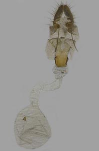 Schütze (1901: 116-117) meldete: "Von mir als R. bei Rachlau auf Sorbus gefunden. Im Niederlande ist die Art zahlreicher, ich fand die R. Ende September bei Klix auf Salix cinerea und bei Lömischau auf S. repens."