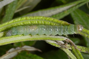 Die Raupe entwickelt sich an diversen Weiden feuchter Standorte, von denen der Korb-Weide anscheinend die größte Bedeutung zukommt. Zumindest lokal werden möglicherweise auch Moorbeere oder Rosmarinheide genutzt, wobei deren relative Bedeutung - so die Bestimmungen richtig waren - noch nicht klar ist.