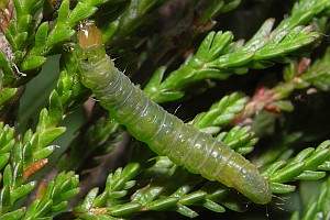 Die Art scheint ganz auf das Heidekraut als Raupennahrung fixiert zu sein. Wegner (2011) schreibt zu Sylt: "Die Raupen wurden wiederholt in ovalen Gespinsten in mittlerer Höhe an den Besenheidepflanzen festgestellt."