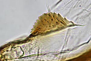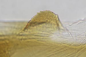 - sklerotisierter Teil des Colliculums setzt unmittelbar am Sterigma an oder ragt sogar in dieses hinein, ist breiter als lang und auffällig verdickt. Damit ergibt sich ein Bild, das an ein Kugelgelenk erinnert. (1)