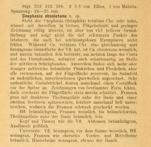 Kennel (1901: 230) beschrieb seine "Cnephasia obsoletana n.sp." ordentlich, übersah dabei aber, dass er ein primäres Homonym produzierte und damit einen ungültigen Namen. Erst Obraztsov (1956: 116) korrigierte das und schuf einen Ersatznamen: "C. kenneli nom. nov. * (90) obsoletana (non Wood) KENNEL, 1901, Iris, Bd. 13, (1900), S. 135. 230 (Crephasia; nom. praeocc.). — KENNEL, 1910, S. 212, t. 11 Abb. 1 (♂)." Für was der Ersatzname galt, war damit klar, aber was war mit "obsoletana (non Wood)" gemeint ? Die einzige von Obraztsov (1956: 345) zitierte Arbeit von Wood war dessen "Index Entomologicus" von 1839. Dort hieß es S. 148 knapp: "1003 Obsoletana Obscure Elm St. 4. p. 129 6997 Cnephasia Taken by Mr. Stephens near Ripley in Surrey, in June, 1827." Auf Tafel 33 folgte dann die Abbildung dieses Falters. Wood hatte hier aber gar keine Art neu beschrieben, sondern sich mit "St. 4. p. 129 6997" korrekt auf Stephens (1835: 129) bezogen, dessen knappe Beschreibung seiner "Cnephasia obsoletana" heute als Synonym von Cnephasia pasiuana gilt. Stephens (1835: 129) hatte darauf verwiesen, dass er das Taxon bereits in seinem Catalogue von 1829 als "6997 Cnephasia obsoletana mihi *" gelistet hatte; dort [Digitalisat auf biodiversitylibrary.org] gab es allerdings keinerlei Beschreibung dazu.