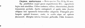 - Beschreibung als Capua saturana: Turati, E. (1913): Un record entomologico. Materiali per una faunula dei lepidotteri della Sardegna. — Atti della Società Italiana di Scienze Naturali 51 (3-4): 265-365, pl. A-B. Ex libris Werner Wolf.