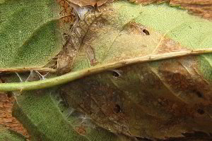 Die Raupe weist ein an verschiedenen Stellen geflecktes Nackenschild auf, was zumindest bei den ähnlichen (und vermutlich gleichfalls als Raupe überwinternden) Arten Ditula angustiorana, Paramesia gnomana und Epagoge grotiana so nicht auftritt.