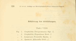 - Erstbeschreibung: Rebel, H. (1889): Beiträge zur Microlepidopteren-Fauna Oesterreich-Ungarns. — Verhandlungen der k. & k. zoologisch-botanischen Gesellschaft Wien 39: 293-326, pl. VIII.