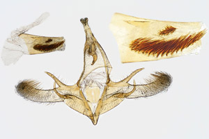 1: ♂, Italien, Friuli, Gemona, Monte San Simeone, 1200 m, 23. Mai 2014 (leg., gen. det. [GP Nr. 2014-200] & Foto: Rudolf Bryner), Referenz Gaedike (2008: Nr. 38)