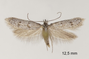 2-4: ♂, Spanien, Aragonien, Huesca, Sierra de Alcubierre, 671 m, 41.831898, -0.514004, 5. und 6. Juli 2021, am Licht (leg., gen. det. & fot.: Friedmar Graf), Referenz: László Gozmány, 2008. Microlepidoptera Palaearctica 13, Symmocidae, ♂ + ♀ Gen. Fig. 205Forum